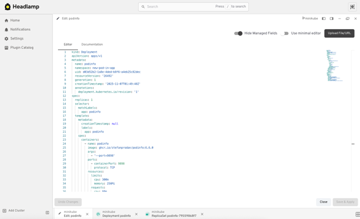 Headlamp removes that friction with Local Cluster. You can create and manage a fully functional Kubernetes cluster right from the Headlamp UI. No terminal. No cloud provider. Click to start, experiment safely, and get feedback fast in a graphical and intuitive way.